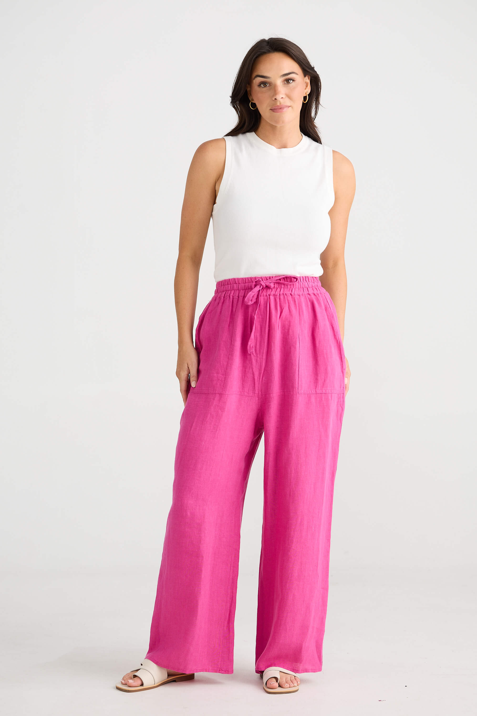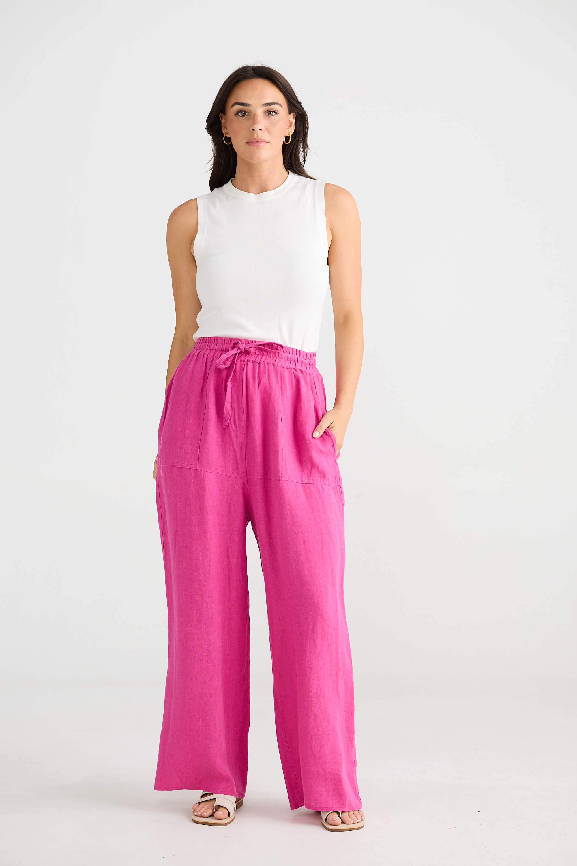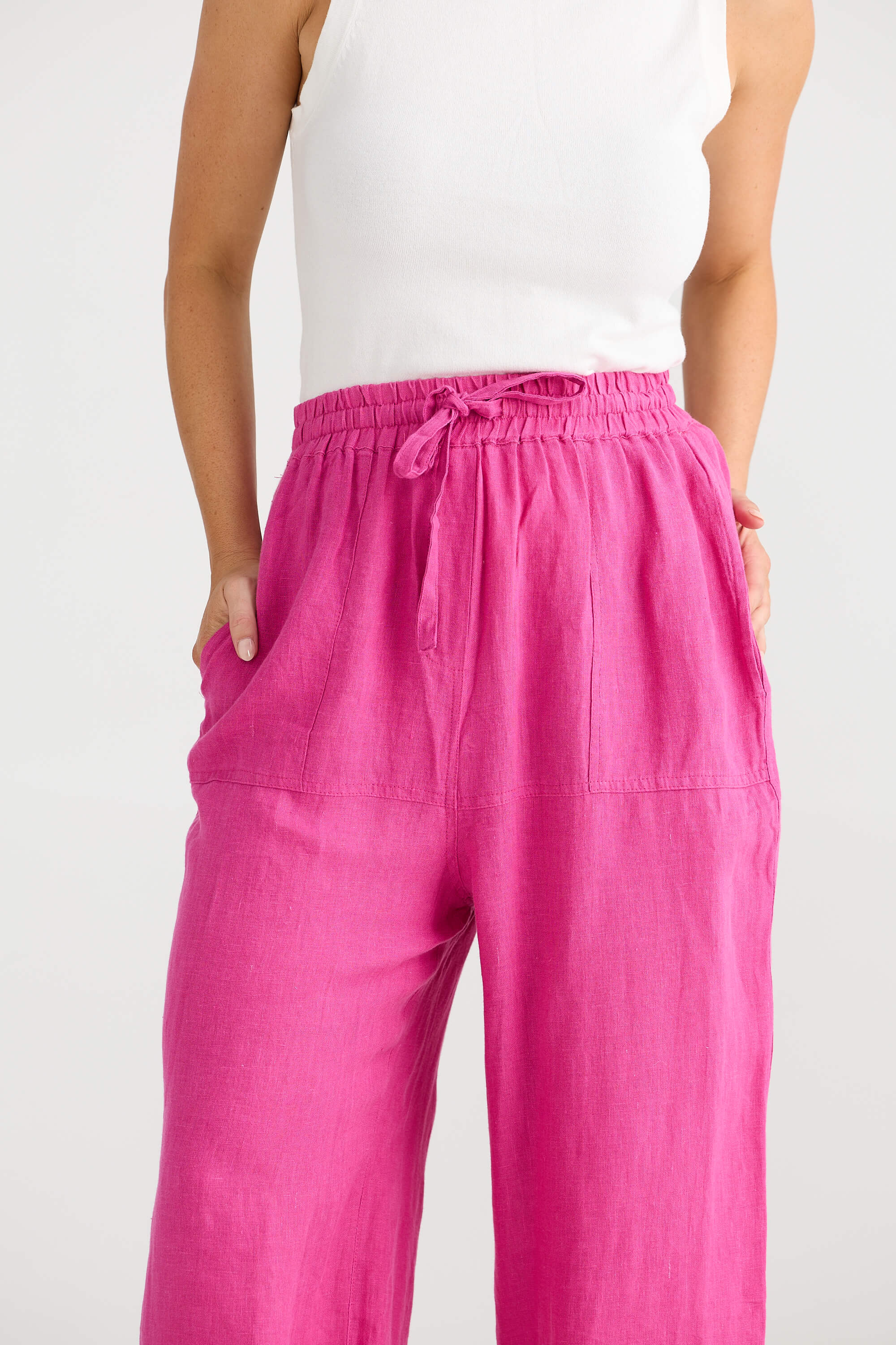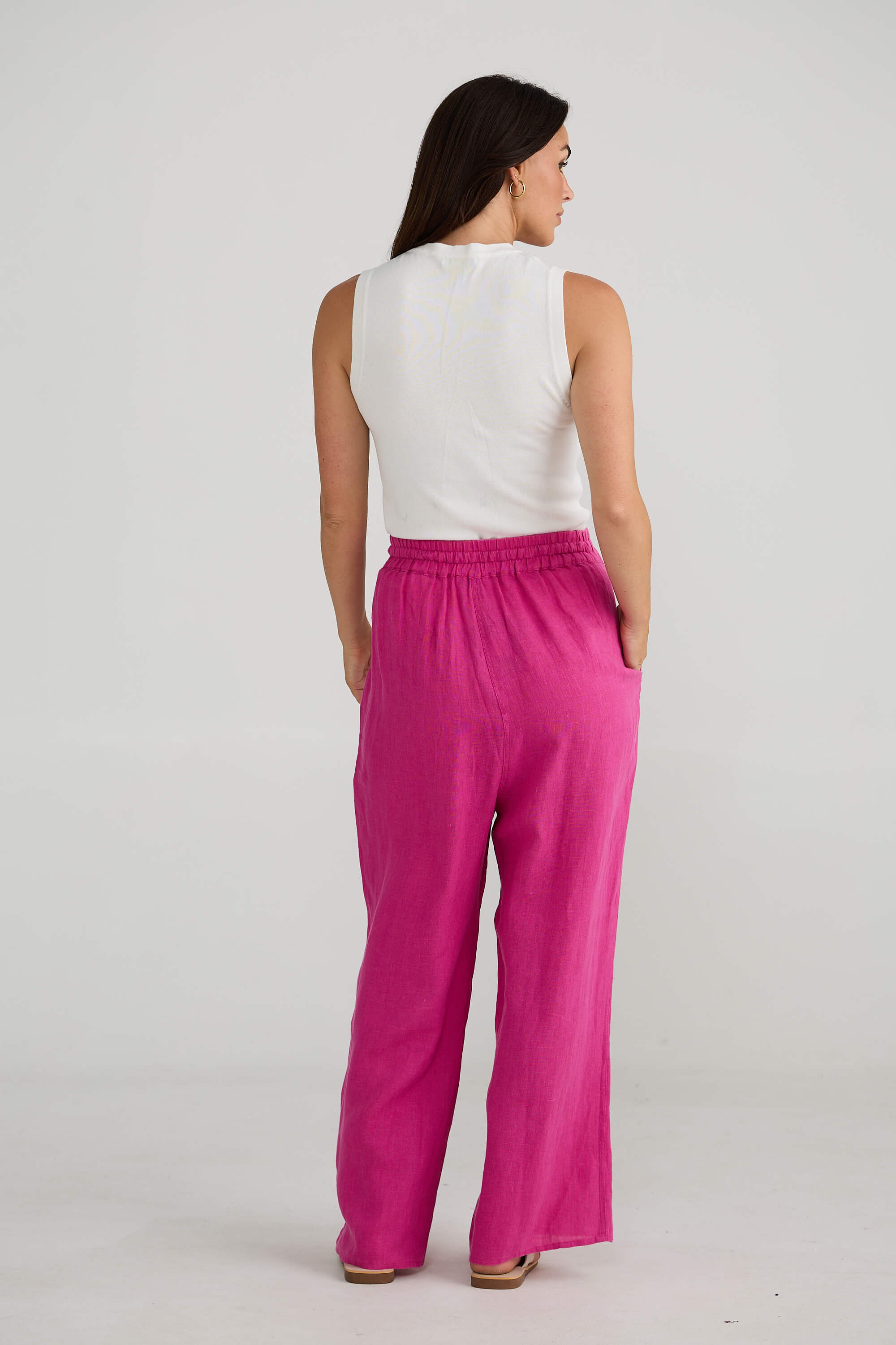 Brighten your wardrobe with the Sunny Days Pants! These vibrant magenta pants combine effortless chic with comfort. Featuring a relaxed wide-leg silhouette and a flattering elastic drawstring waist, they’re perfect for casual days or a playful look. Style with sneakers for a laid-back vibe or dress it up with heels and accessories for an elevated ensemble.