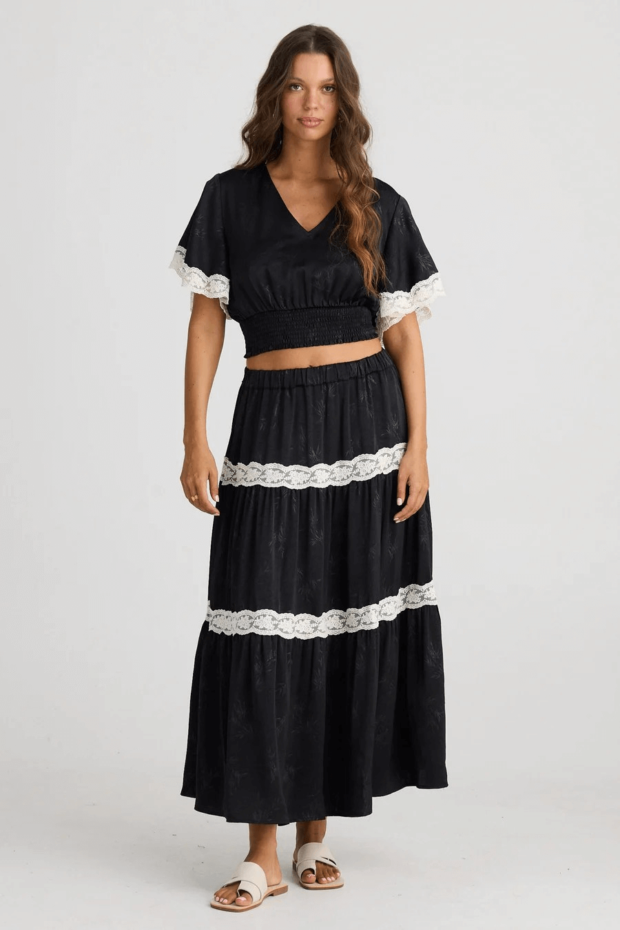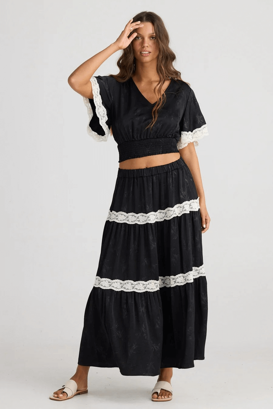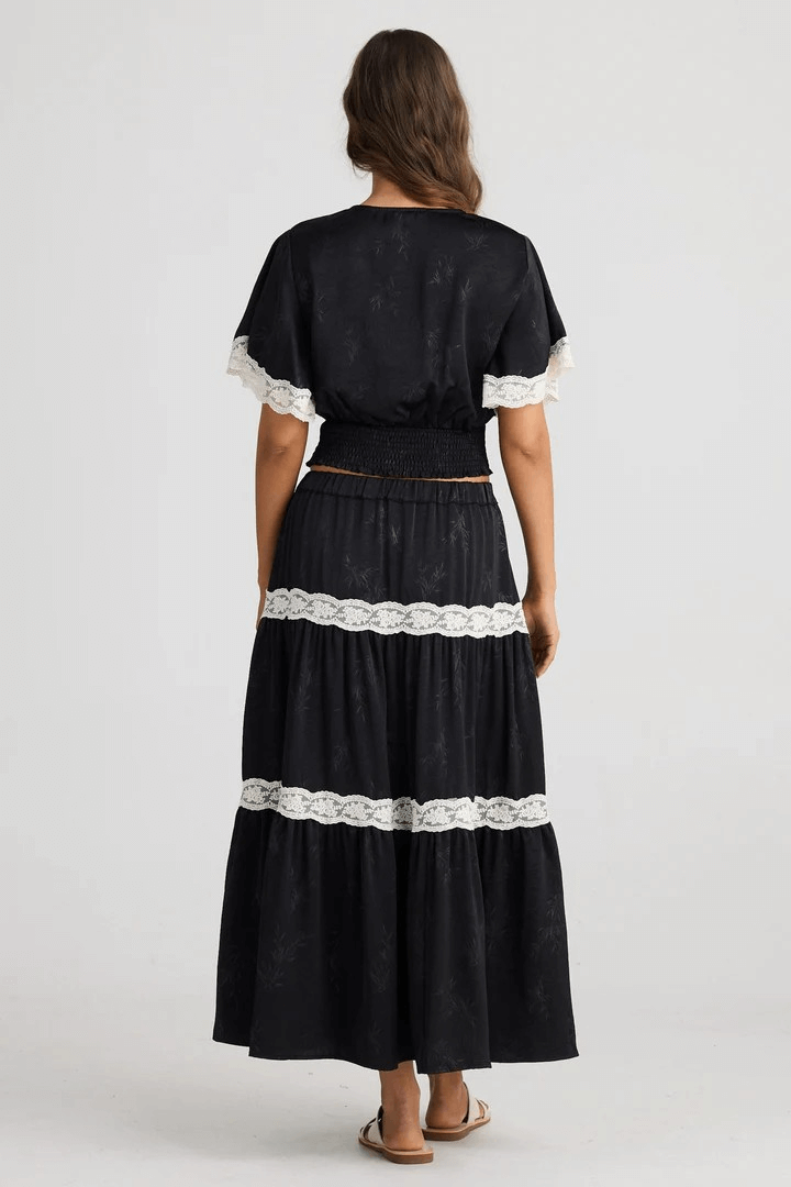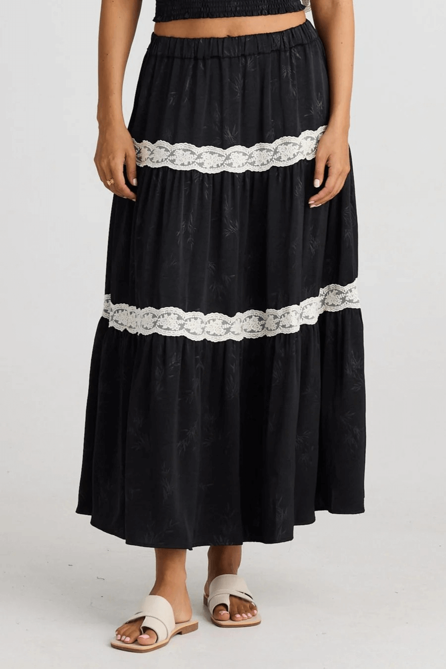 Introducing the Emery Skirt! Emery is a wardrobe must-have for every season made to last. Flowing fabric and boho-inspired tiers give it a romantic charm, while the stretchy waistband ensures a flattering, comfortable fit for all body types.