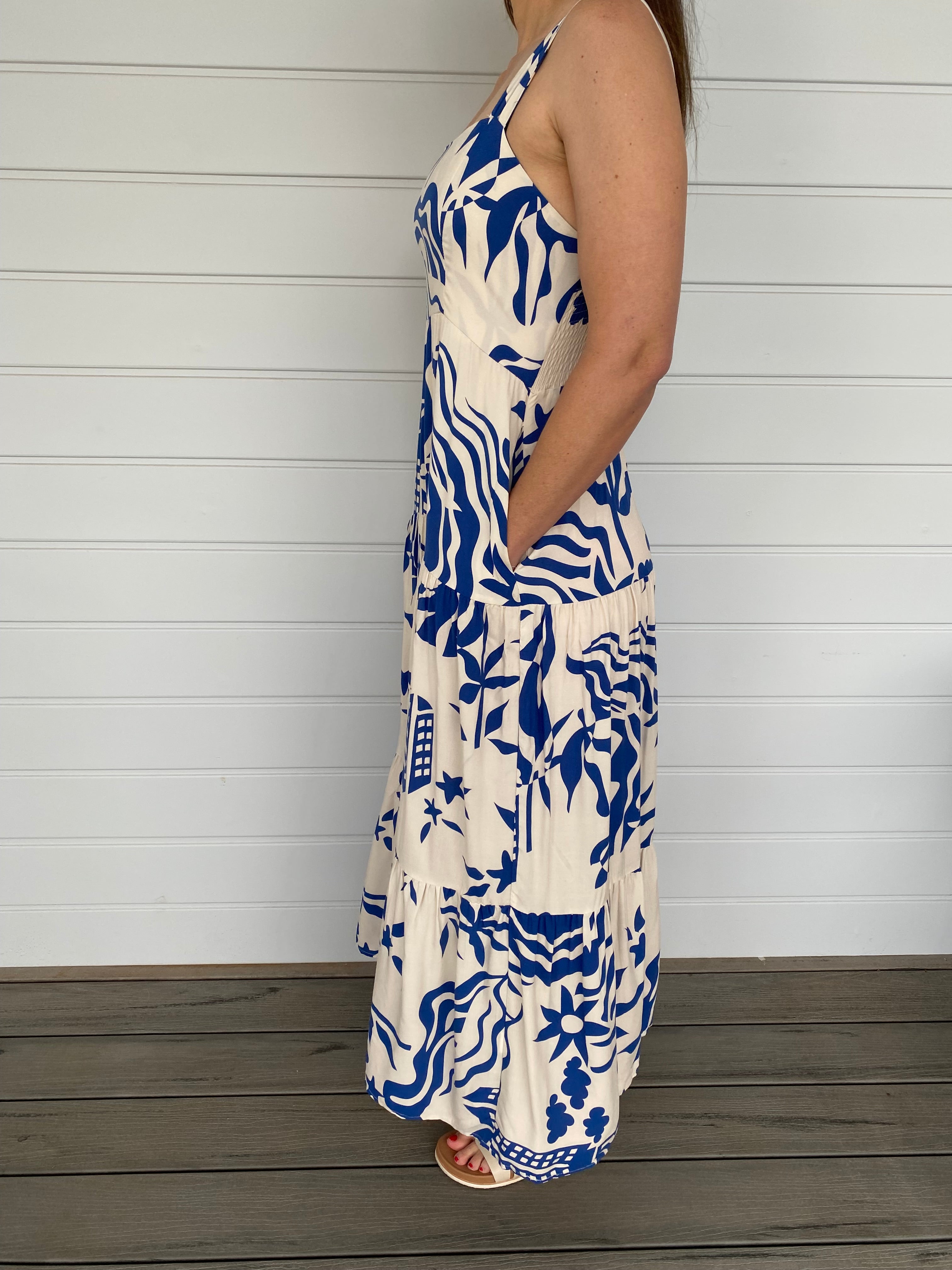Embrace effortless elegance with our Blue Willow Maxi Dress. This beauty features a blue and cream print, square neckline and functional side pockets. Enjoy the soft shirring at the back to allow easy movement. Thick shoulder straps provide the perfect amount of coverage. Perfect to match with a denim jacket and wedges!