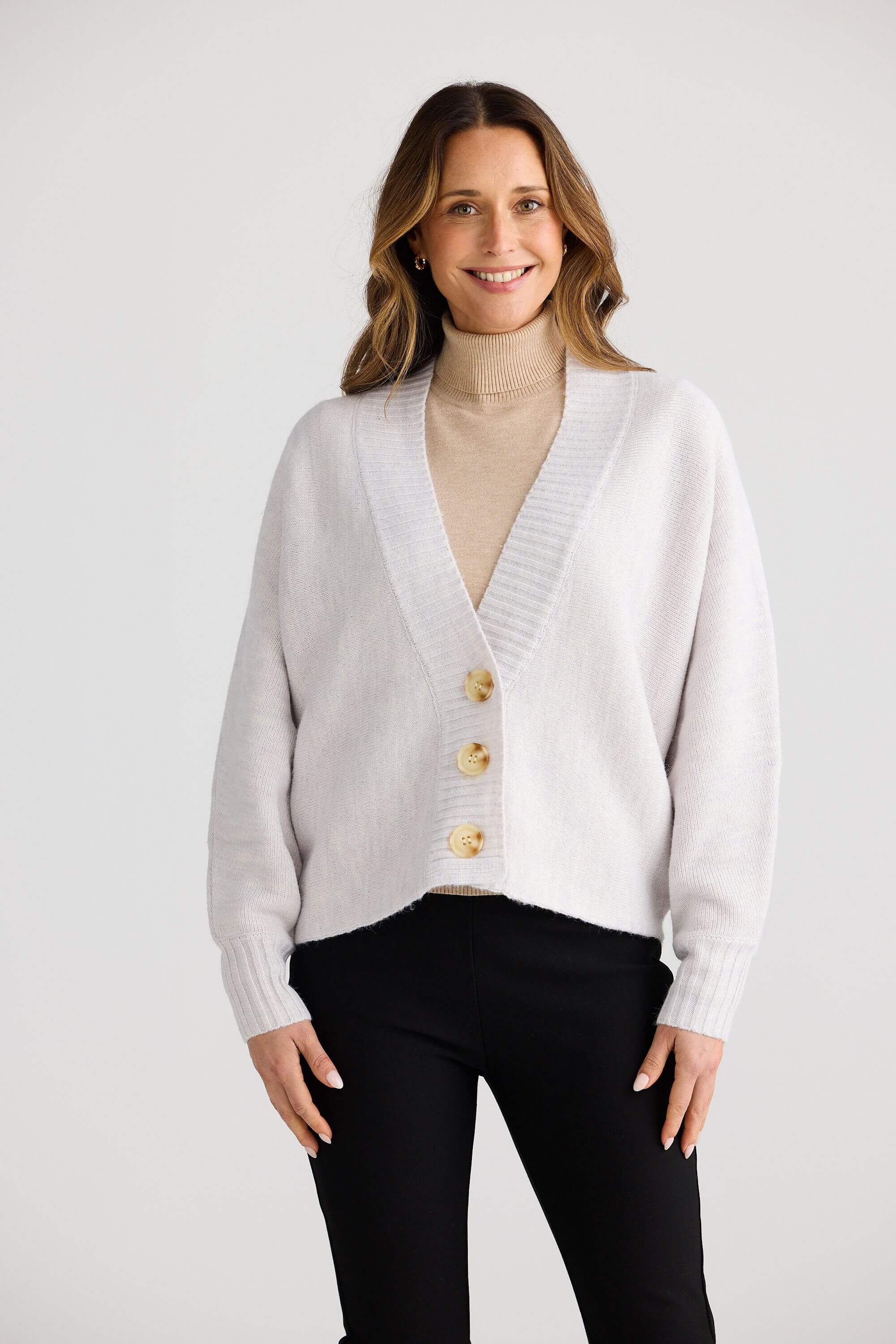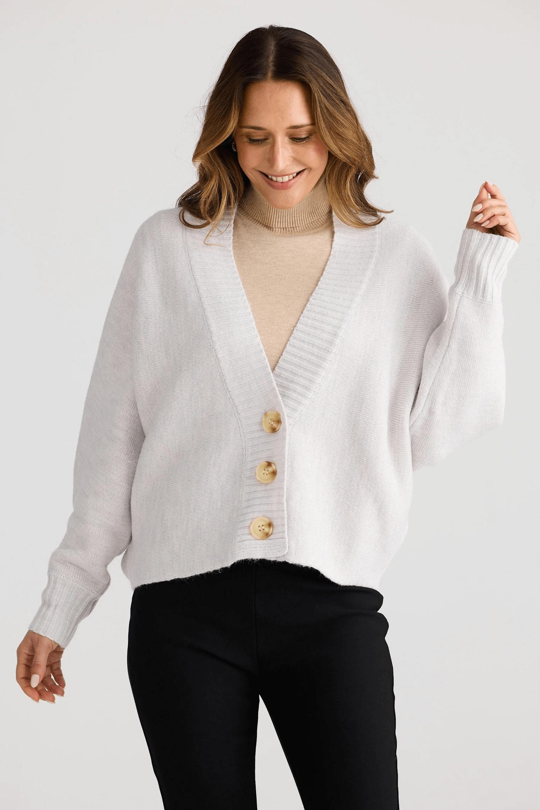 Turn heads and brighten chilly days with the Carrington Cardi—your bold and beautiful layering essential. Crafted in a soft-touch knit with a relaxed silhouette, this cardigan serves cozy vibes with a modern twist. The netural shade makes this a versatile layering piece while the chunky buttons and ribbed detailing give it that elevated finish.