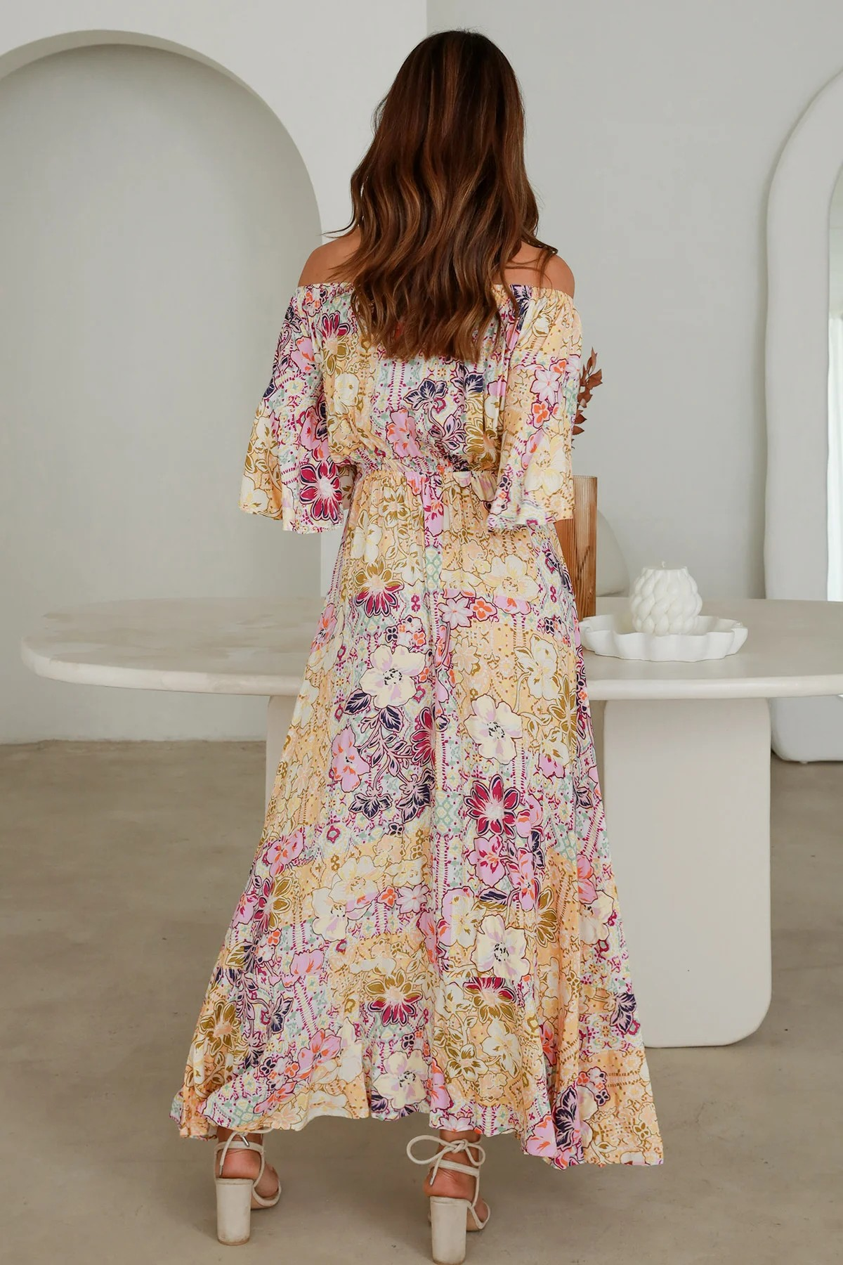 'Bohemian Bliss Off-Shoulder Maxi Dress – Effortlessly Elegant'